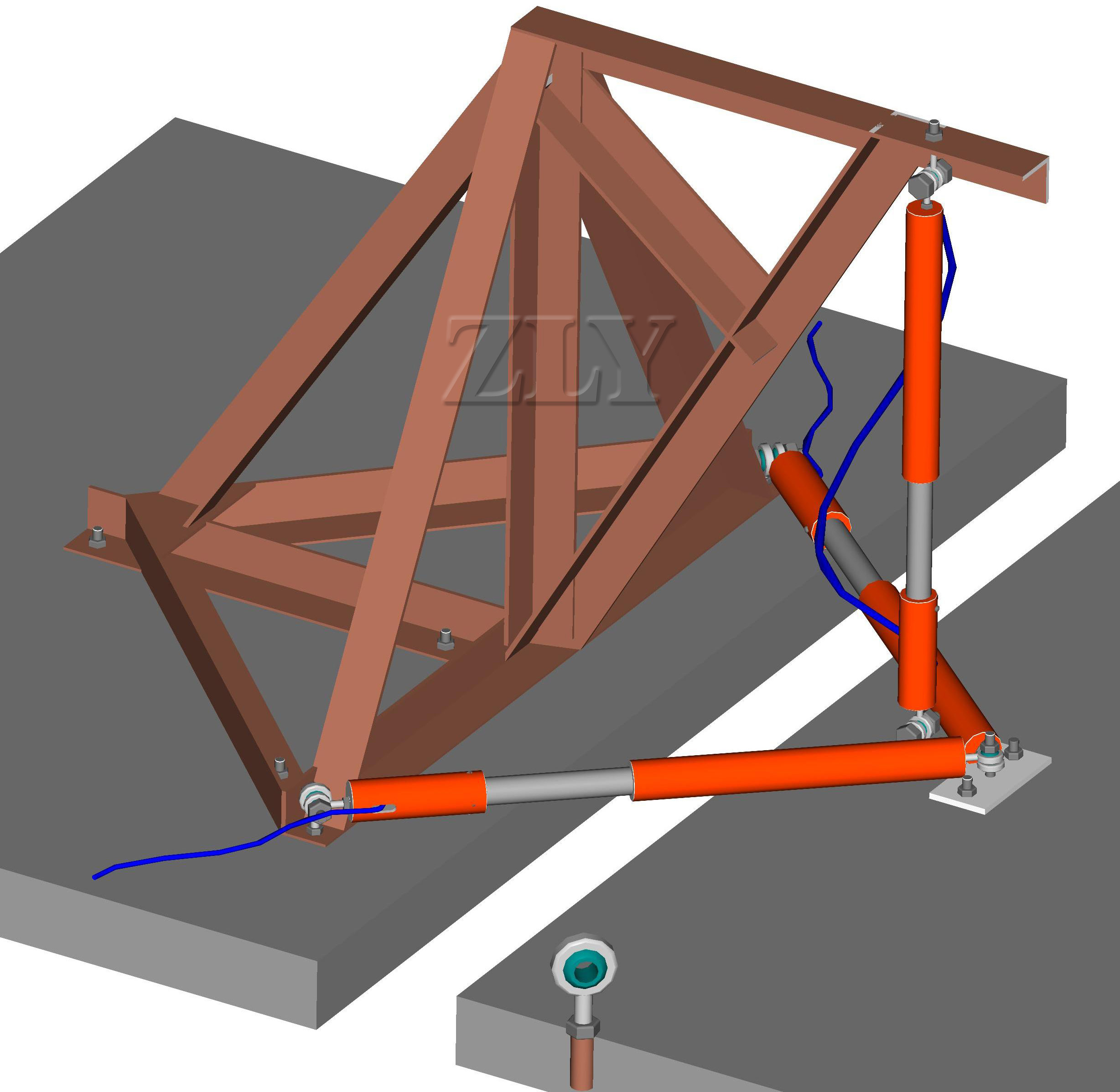 ZLY-V7000G型振弦式内装三向测缝计广泛应用于混凝土面板堆石坝周边缝的位移观测。它由一个安装架和三个位移传感器组成,三个位移计中有一个专测垂直方向位移,另二只构成平行于安装面边长为800mm的等边三形,用来测量水平方向的位移量,也广泛被用于需同时测量X、Y、Z三个方向的相对位移变化量的仪器。仪器由安装支架、三个不同方向的位移传感器、传输电缆等组成。